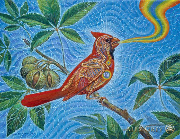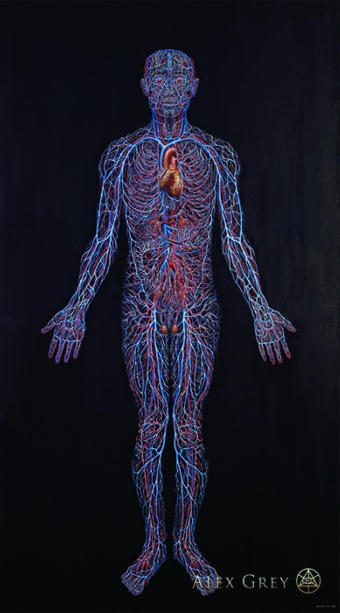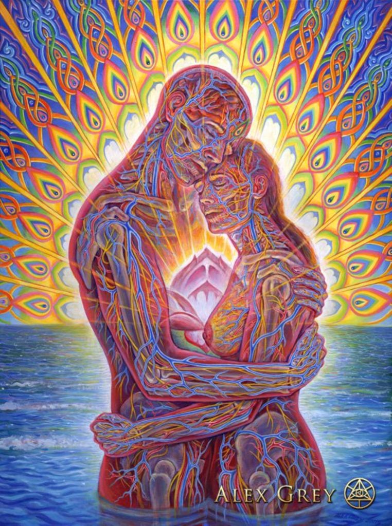 Alex Grey is a firecracker man, from the highest world artist shelf. He is a mystic visionary artist and a co-founder of Chapel of Sacred Mirrors. He was born in Columbus, Ohio on November 29, 1953. Alex studied arts in college and then went to medical school where he spent five years in the anatomy department preparing cadavers for dissection; his anatomical training greatly influenced his paintings. At the Museum School, Alex met his life-long partner, the artist, Allyson Rymland Grey. He is best known for his paintings that portray multiple dimensions of reality, interweaving biological anatomy with psychic and spiritual energies. Grey’s visual meditation on the nature of life and consciousness, the subject of his art, is contained in five books. Grey’s paintings have been featured in venues as diverse as the album art of TOOL, SCI, the Beastie Boys and Nirvana, Time, Newsweek magazines and the Discovery Channel. His most unique and widely appreciated works of transformative art were exhibited for five years in the Chapel of Sacred Mirrors in New York City.