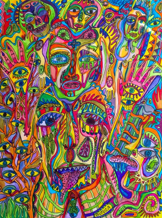 Cathy Butuza is an artist from Switzerland. Her amazing paint art is deeply involved with heart breath and passion for life. In her work, we can see a lot of shamanic human expressions with the real journey of the universe.