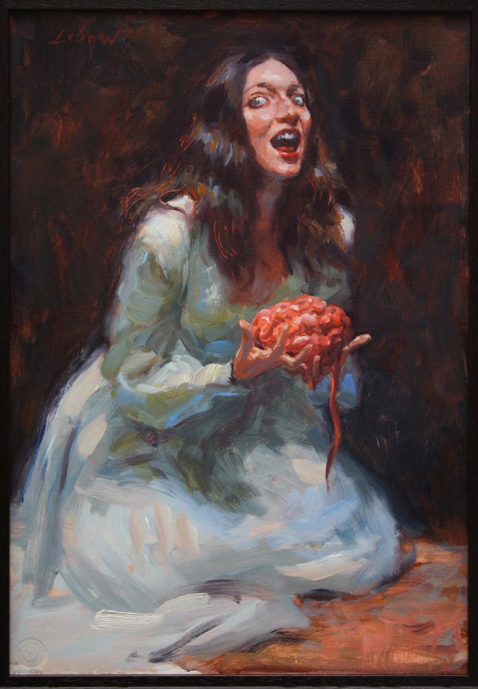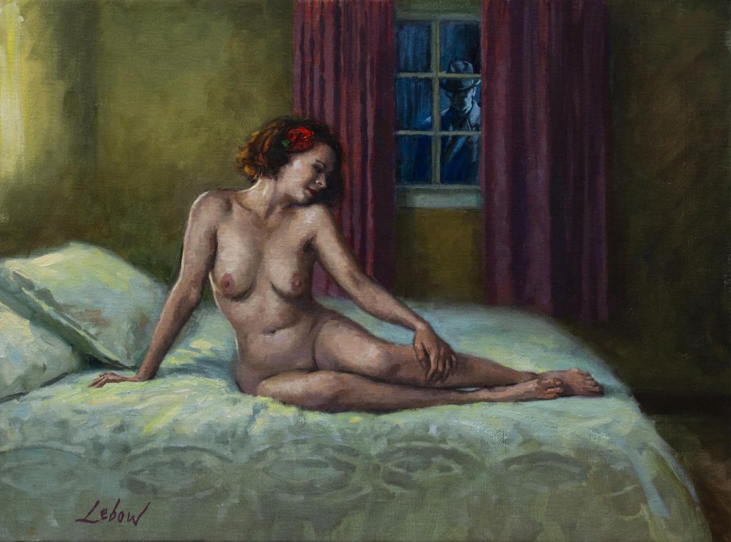 Dave Lebow is a representational painter, illustrator, and teacher. He was born and raised in Oklahoma and now lives with his wife, daughter and two cats in Venice, CA. He’s got a wickedly contemporary retro style that recalls the pulp magazines of long ago. He is inspired and interested in imaginative storytelling pictures that evoke an emotional response. He studied privately in New York with Burton Silverman and at the Art Students League with Robert Beverly Hale, David Leffel, Daniel Green, Robert Philipp, and Robert Brackman. Dave has a BFA in Painting from Boston University and an MFA in Experimental Animation from Cal Arts. His work was featured in several exhibitions at key galleries and museums, including the La Luz de Jesus Gallery.