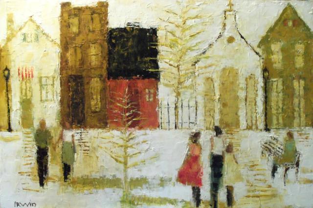 Holly Irwin is an artist who grew up in Pittsburg and attended the Carnegie Institute from age 12 until college, learning to draw and study art from the classical perspective. Then, she attended Carnegie Mellon where she studied art. Holly was inspired by her mother who was an illustrator and portrait painter. There were always easels around the house with artwork in various stages. Irwin’s paintings are magnificent by any standard and widely revered by collectors, galleries, and design publications. She focuses on the simple life and this shows in her work. She frequently paints women and children, often with baskets, barns, houses, and nests in the background or in the hand. Holly usually works in oil and frequently uses a palette knife, which gives so much richness to the paintings. Holly says: “I apply layers of modeling paste, gel mediums, oil paint and acrylics with brushes, knives, and rags to achieve depth and complexity. The finished effect of my mixed media paintings is an aged quality, like a fresco.”