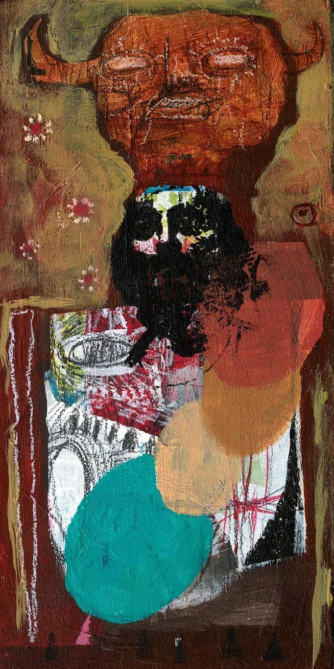 Jesse Reno is a self-taught American painter and muralist, whose art is based on his interest in native and primitive societies. He was born in 1974 in Teaneck, New Jersey. He currently lives and works in his home studio in Portland, Oregon. Jesse has taught his techniques and ideas about painting extensively in the US, Canada, Australia, and Mexico. He only takes on work where he is free to create and be himself. Jesse has never pre-planned or conceptualized a painting in his entire career. He typically works on 5 to 10 canvases at once, jumping between them, and in that way keeps himself from getting attached to one idea and allowing a thematic appearance to occur. The materials Reno uses include acrylic paint, oil pastels, and colored pencils, which he applies on surfaces like wood panel and canvas. Highly creative, Jesse Reno has created over 3000 paintings and drawings over a period of 15 years. He has been exhibiting his works since 2000, in numerous venues across the United States, Canada, France, Mexico, and many others. His work has been featured in a lot of publications such as Juxtapoz, Artnews, Artension, among others.