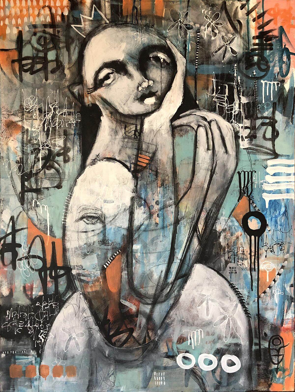Katie O’Sullivan is a Postwar and Contemporary artist who was born in 1959 in Ireland. She studied art at the Chelsea College of Art. She first exhibited in London in 1981 and since then has exhibited her work in London, New York, Tokyo, and Hong Kong. Her abstract style is a rebellious response to her classical and technical artistic training. Having always been drawn to the artistry of the human form, the New-Jersey born artist enrolled in every portrait-painting workshop or figure drawing class she could, even while majoring in graphic design at Parson’s School of Design in New York City. O’Sullivan’s paintings are reflections of the artist’s travels, studies, personal experiences, and visceral feelings, while also taking on a life of their own as emotionally charged figures push and pull their way onto the canvas. Her paintings are in collections all over the world including those of HRH Prince Philip, Prince Fahd Salman, Sheik Mohammed, Mr. JP McManus, Mr. John Magnier, Lord, and Lady Lloyd Webber and Mr. Roger Waters.