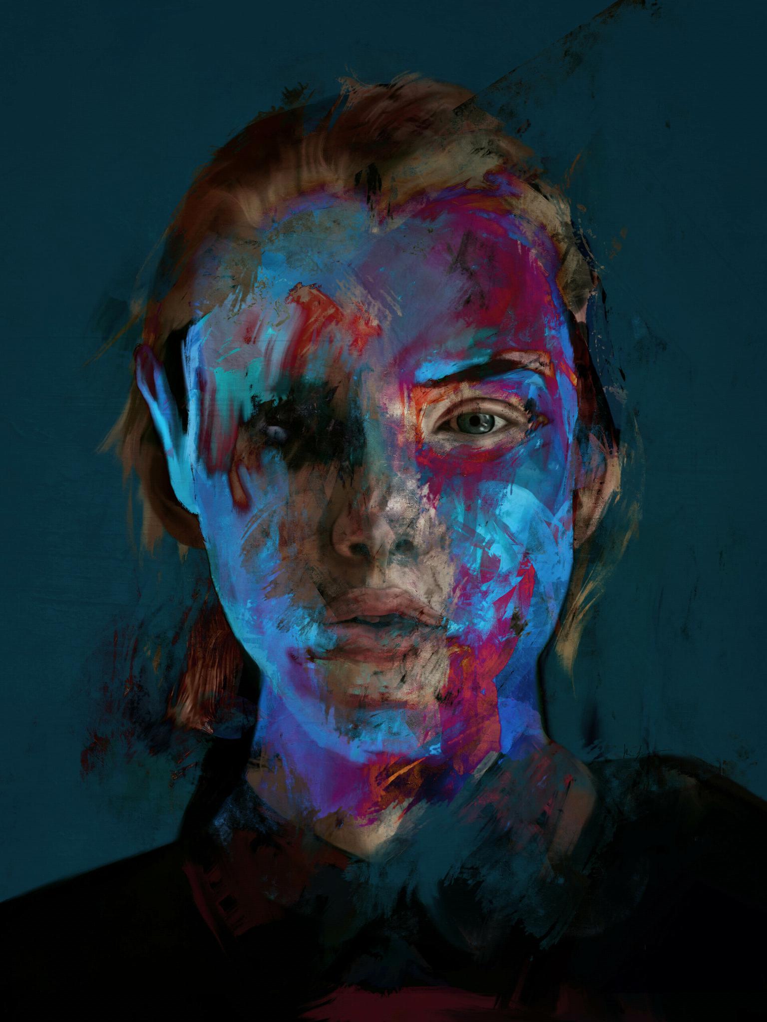 Kim Jakobsson is an artist from Sweden. His main goal is to capture feelings of anxiety and dread. His work can be described as surreal and dark. He only paints human subjects. Kim tried to paint different things, but he always ends up coming back to humans. He finds it really interesting. His art is not about violence though, more about the loneliness in which we might find ourselves in this journey called life. He mostly works digitally, where he distorts and manipulates the subject in a way that makes them appear like something from a bad dream. Kim is a self-taught artist that also works as an illustrator, but the passion lies within painting. Ken Currie, an oil painter from Scotland was a huge inspiration to him.