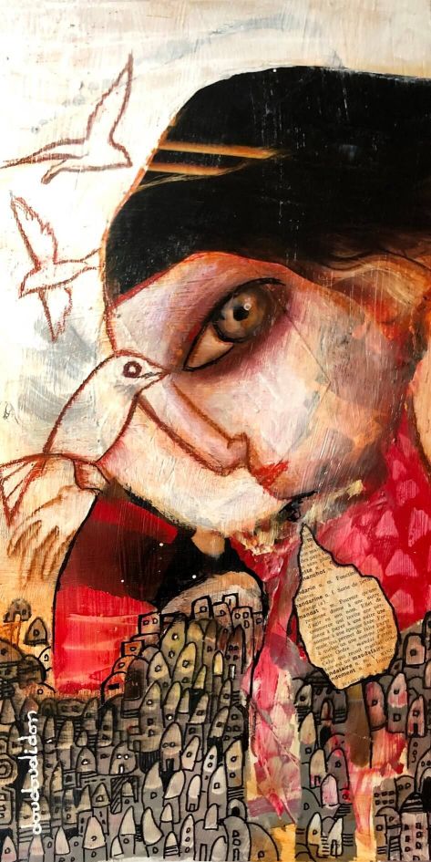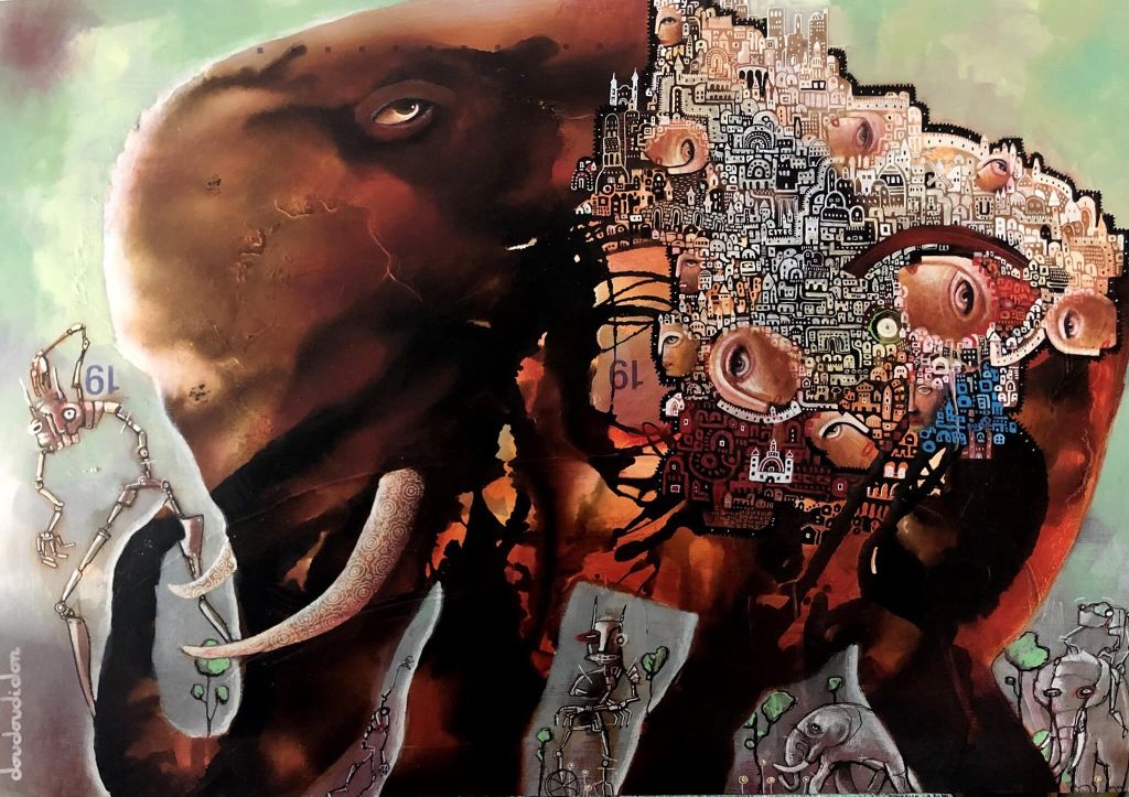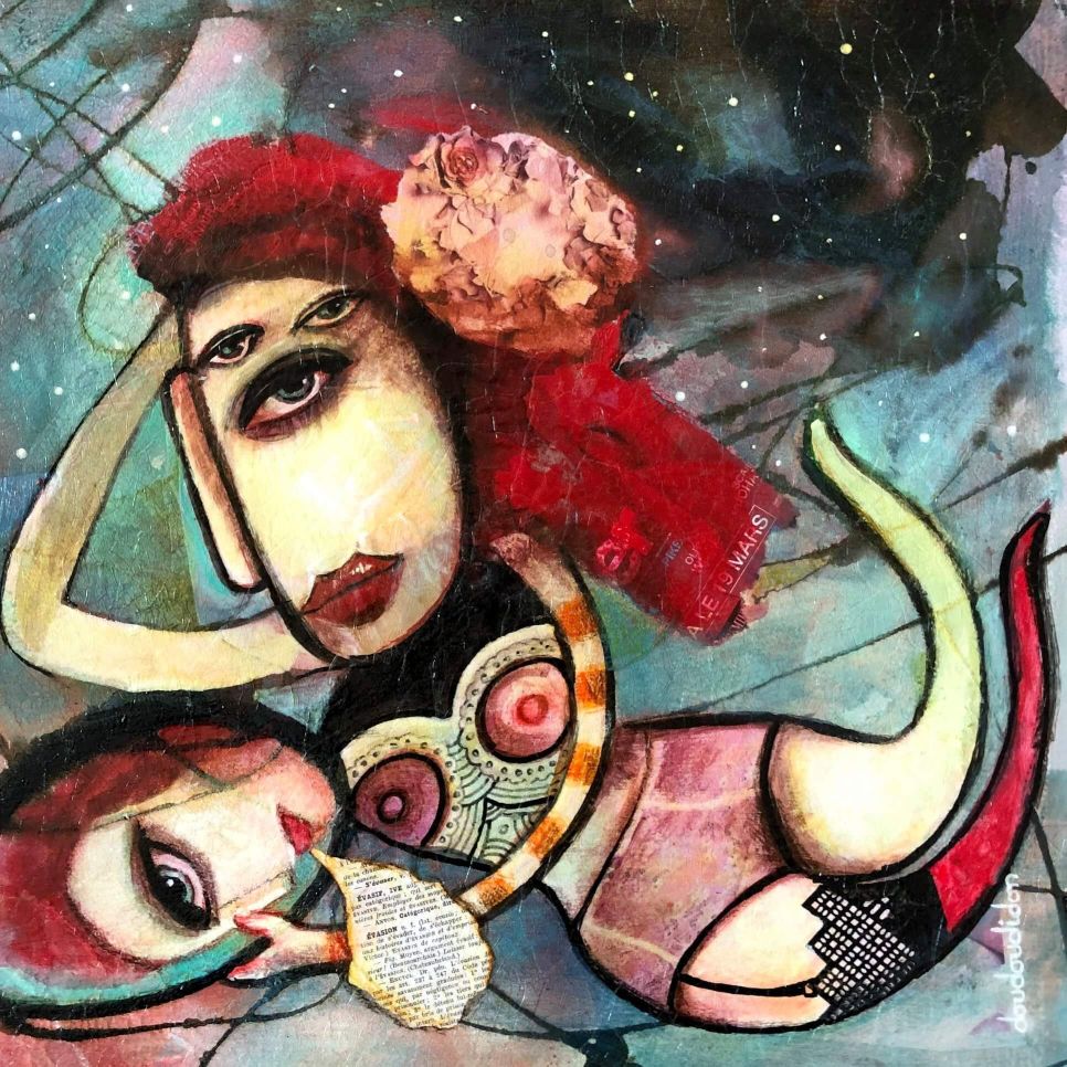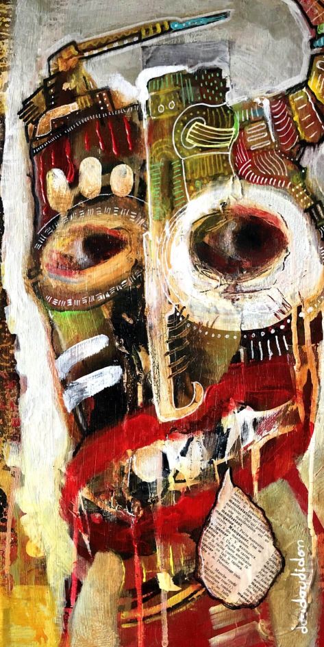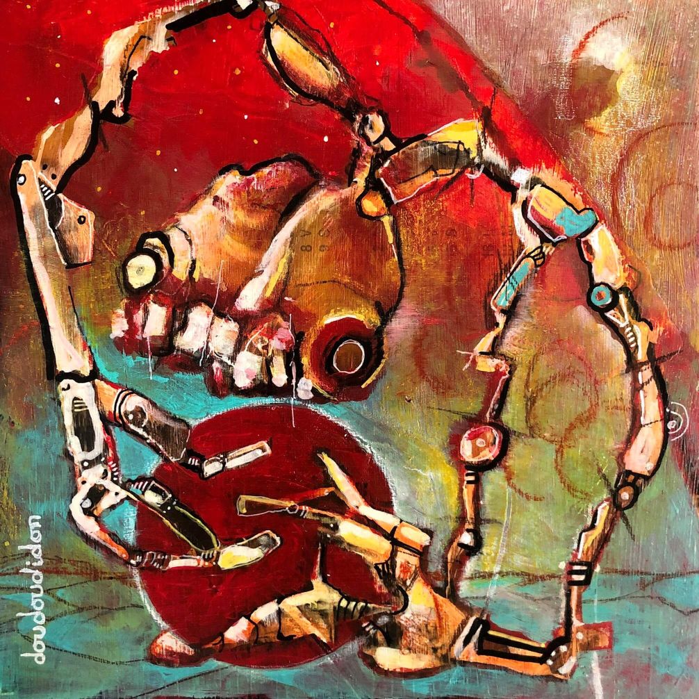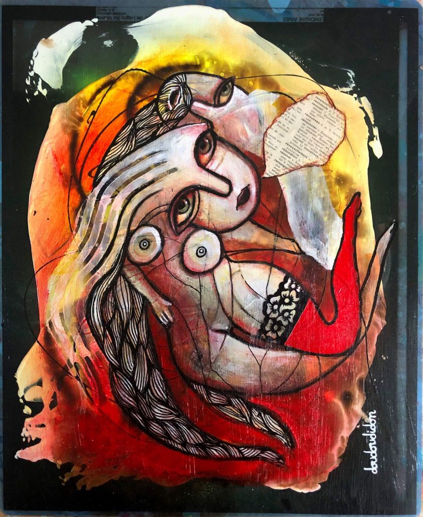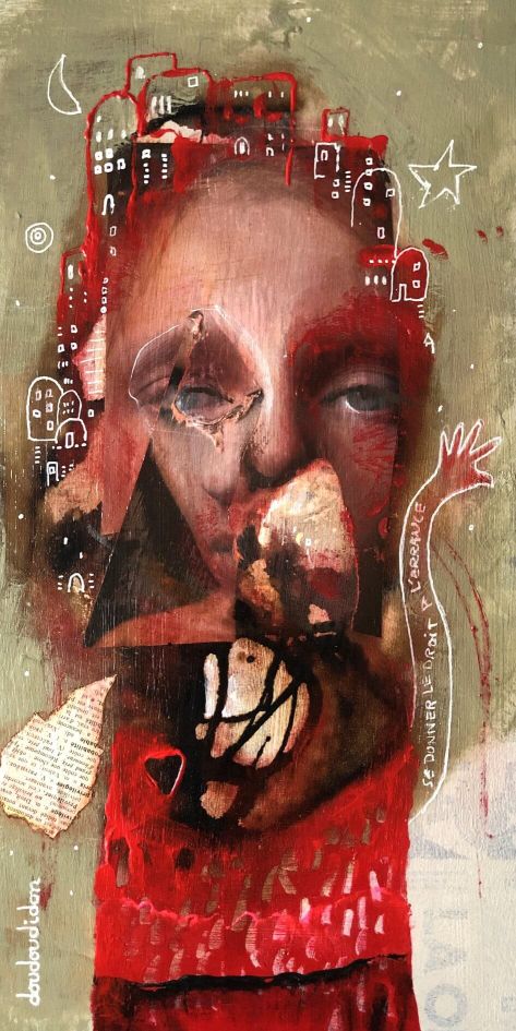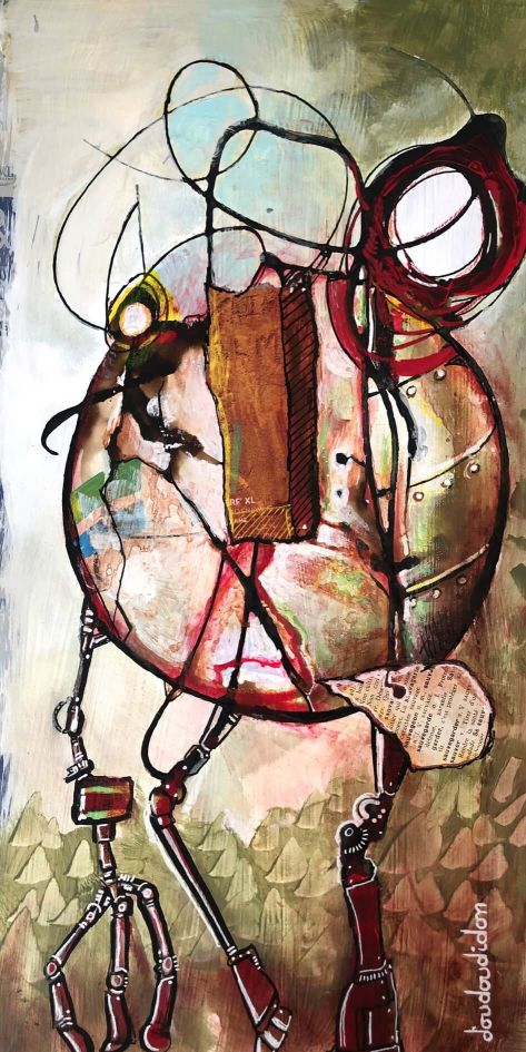 The Breton Loic Tarin, aka Doudoudidon was born in 1974 in France. He passed the baccalaureate, then a degree in advertising graphic design. He started off creating images and illustrations, and more recently it clicked into place for him that he should start an artistic life. He likes to use what is an initially recyclable waste. He also likes to distort objects like playing cards with themes inspired by the Middle Ages. He distorts offset plates, a kind of rigid aluminum printing plate. He also recycles films of medical X-rays; interested in their petrol blue plastic transparency and the idea of a photograph of the mind.