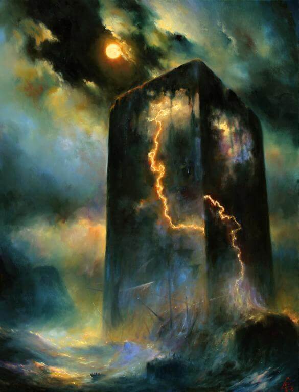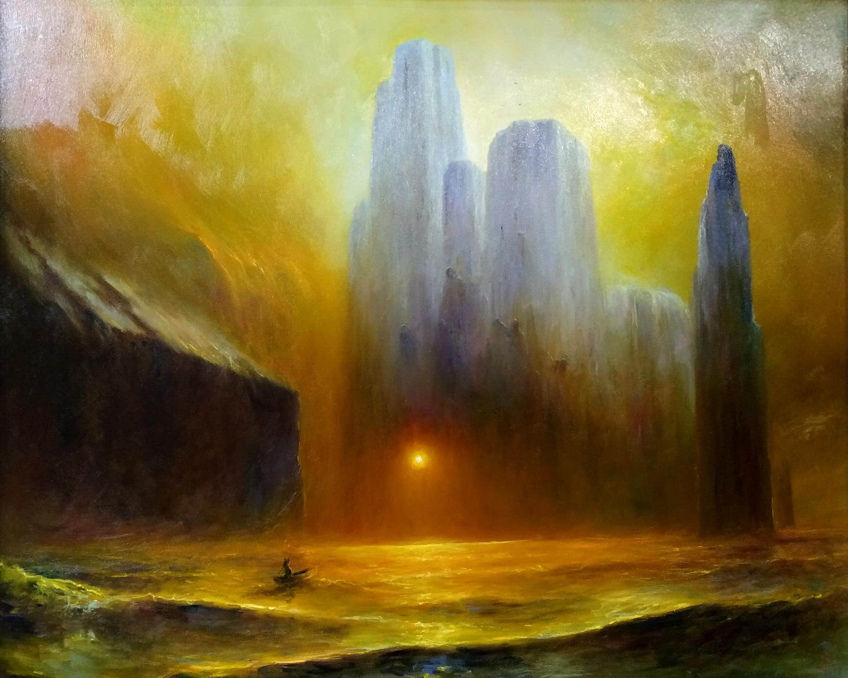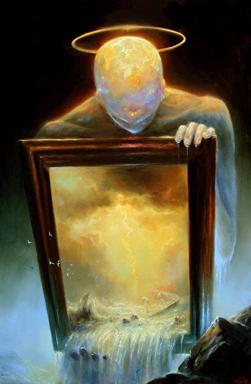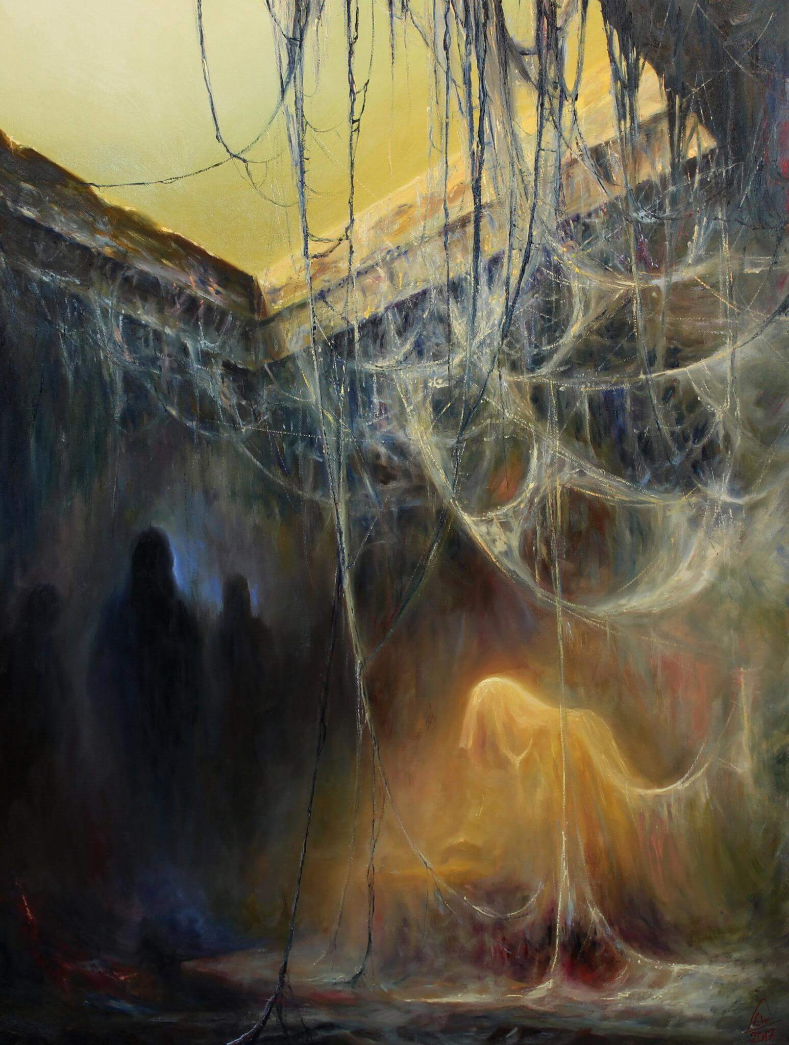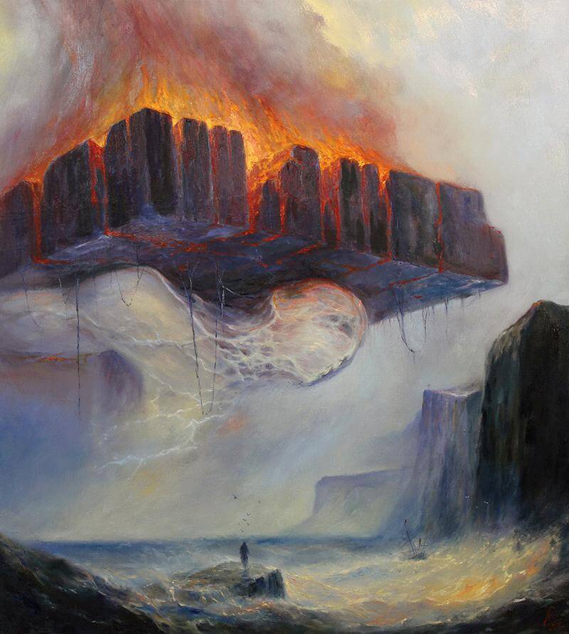 Mariusz Lewandowski is a surreal artist born in 1960 in Poland. Lewandowski’s paintings are sated by an apocalyptic mood, accentuated by the wide, dusty and simply emptied landscape he creates. The main subject of the paintings is desolated sinking ships, wild sea and sometimes galactic and divine characters. He is interested in music and unexplained phenomena. Pouring over the oil paintings that Mariusz has brought to life, it’s clear he loves to pull from apocalypses and cosmic horror; focusing in on barren worlds, cataclysms, and other-worldly beings that are completely beyond mere mortal comprehension. He also places a strong focus on imagery pertaining to hooded, grim reaper-figures in many of his works too. Some might say that a Polish person loving such images and motifs is pretty much expected, but there is a reason behind all of this.