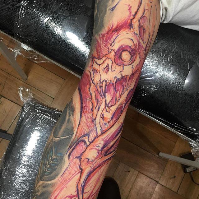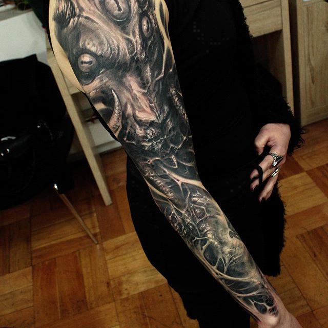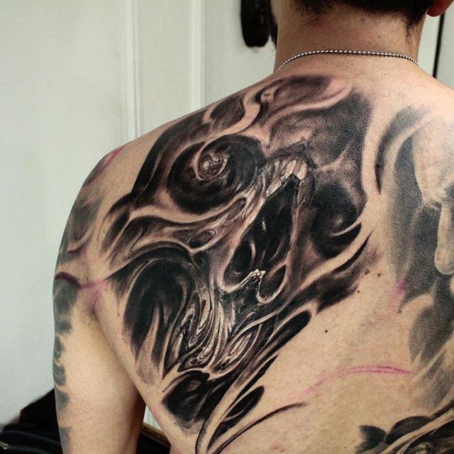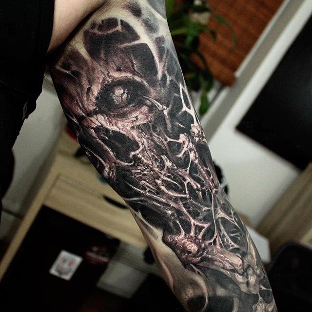 Matias Felipe is a tattoo artist. Tattooing from Santiago, Chile, he has a progressive tattoo style that will blow your mind. Focusing on dark shading, twisted and intriguing themes, the creations of Felipe are unlike anything else and offer endless inspiration. His art is influenced by Paul Booth and it can be maybe a little bit too intense, but also stunningly beautiful.