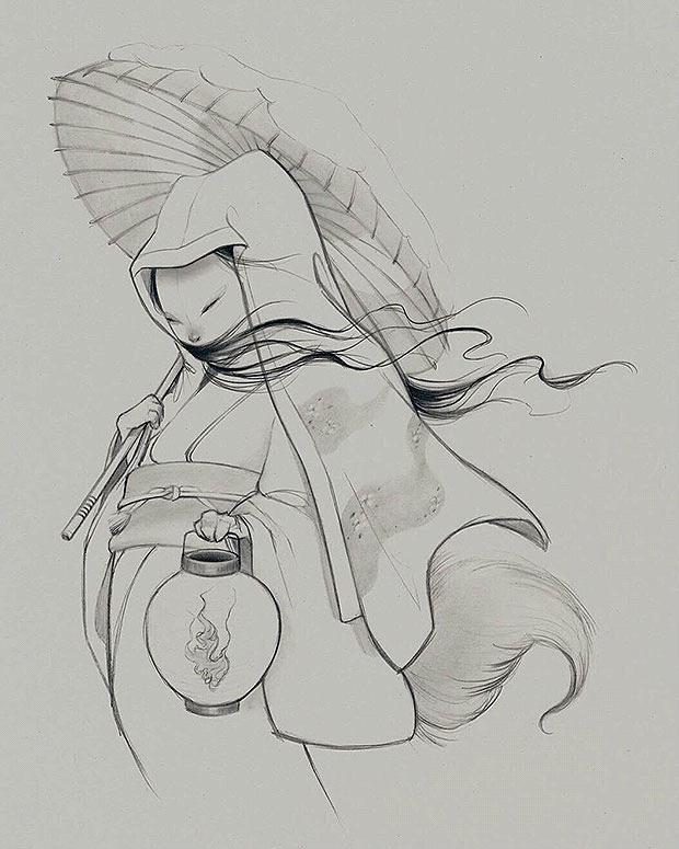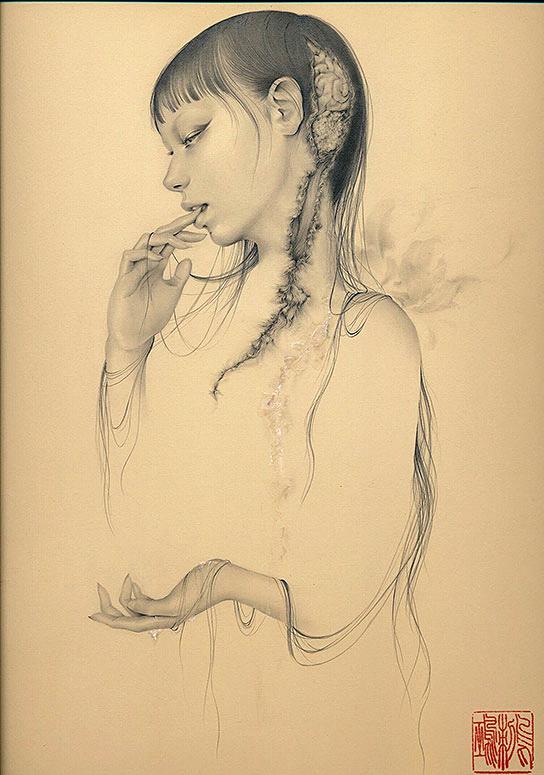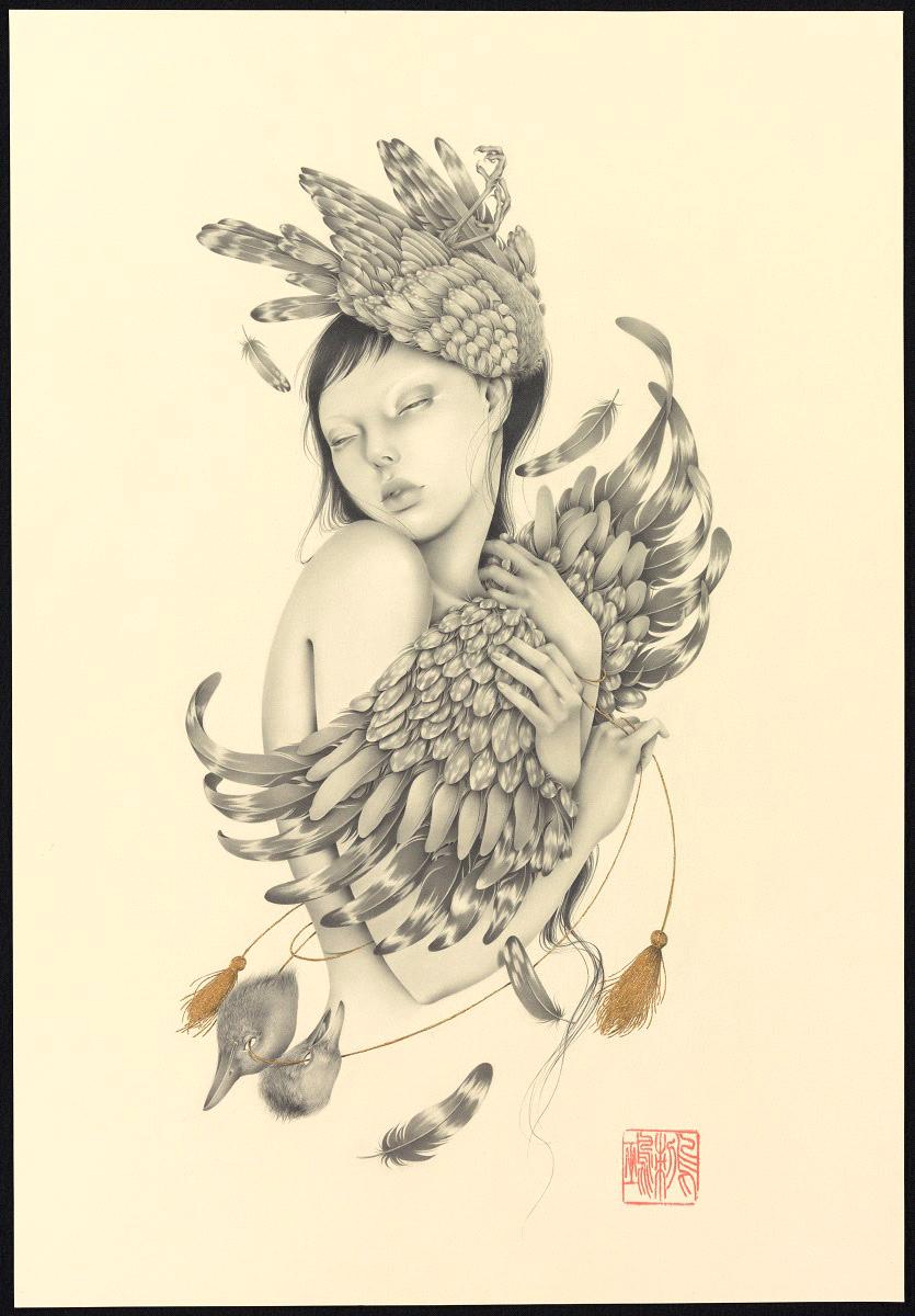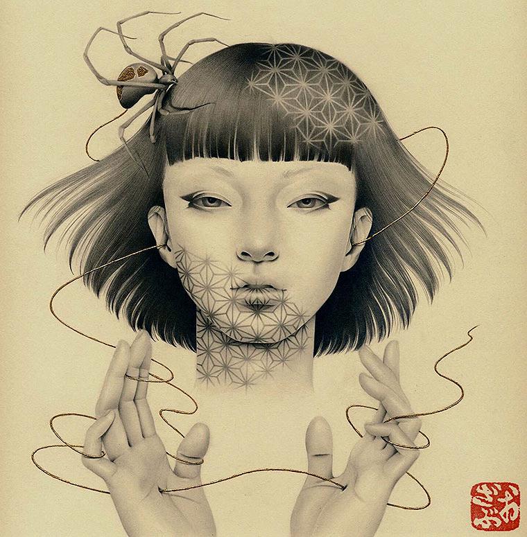 Ozabu is a self-taught Japanese painter and an illustrator whose elaborate drawings are rich with content and details. Her work was featured in an exhibition at the Thinkspace Projects. Ozabu’s self-taught drawings are staggeringly detailed, stylized and yet lifelike, rendered with incredibly subtle line work. Created with minimal media in pencil and graphite on paper, her ghostly hauntings of paper flesh range from the comely to the macabre. The way she renders skin is so subtle and delicate, and her line work is god-like. Ozabu is currently working on an upcoming solo show and regularly posts in-progress and completed pieces on Instagram.