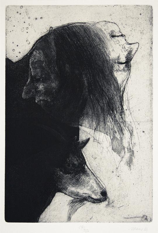 Robert E. Marx was born in Germany in 1925. He moved to the United States in 1927. He is part of a small group of important American figurative artists who comment on what it means to be human in an inhuman age. A kindred spirit with such great but often overlooked social protest artists like Leonard Baskin and Leon Golub, Marx’s work speaks only to those who wish to be challenged by an artist’s idea — those who seek an intense and enduring dialogue with works of art. His art is intense. His paintings, prints, drawings, and sculptures can seem dark and brooding with their somber colors and pale expressions. The ethereal figures seem to confront you with their gaze, but they are also looking for empathy. His intention with this body of work is to address the human experience, which at times can be a dark subject. He has shown his work internationally and is represented in major museum collections including The Museum of Modern Art, The National Gallery of Art, Whitney Museum of Art, Memorial Art Gallery, the Seattle Art Museum, among many others.
