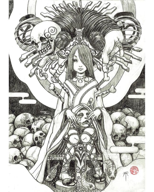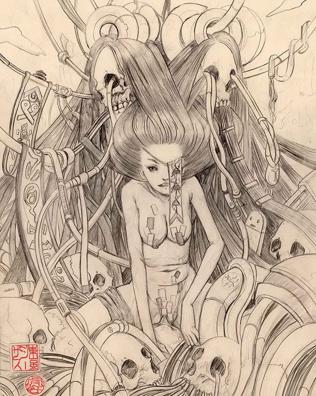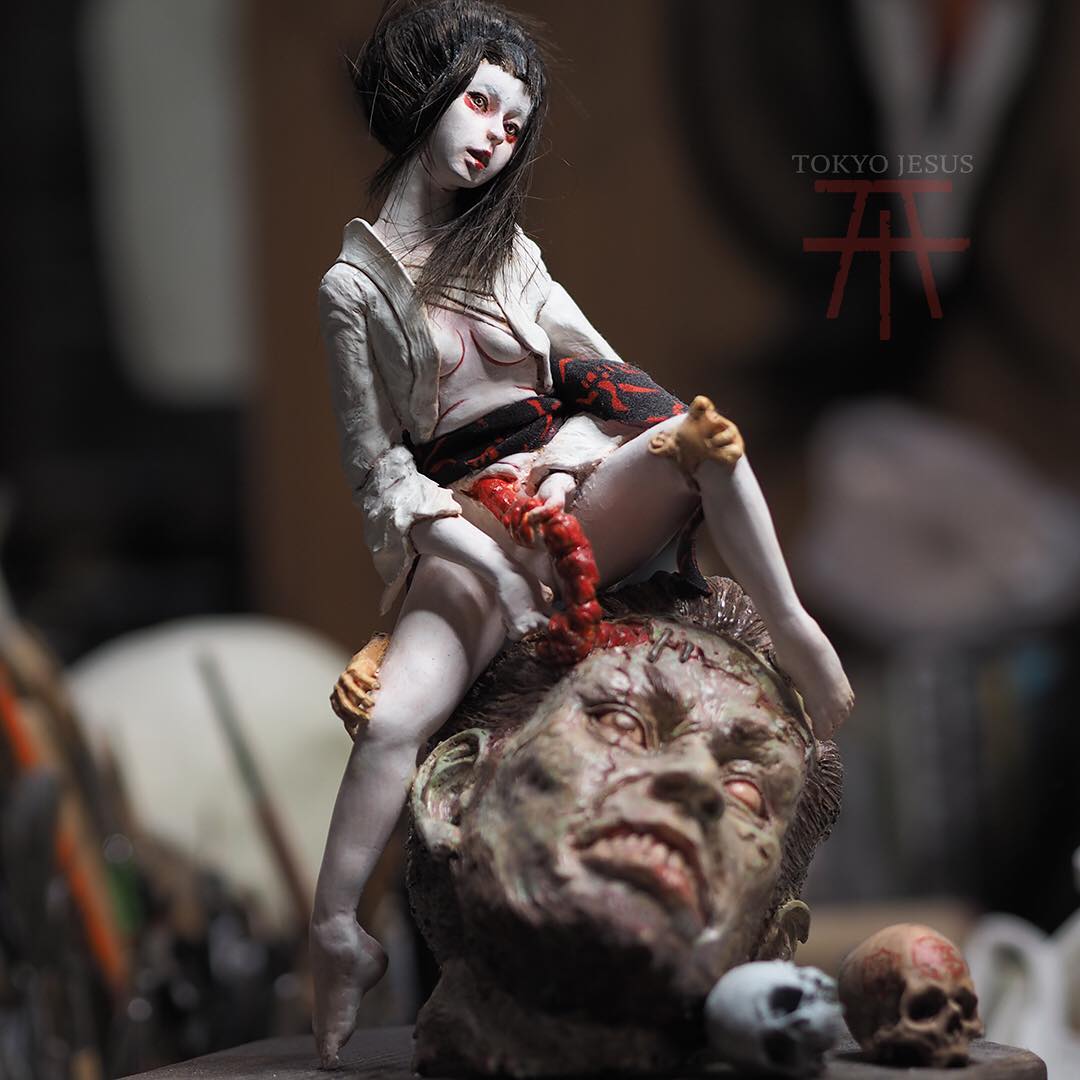 Sayu (a.k.a. Tokyo Jesus) is a sculptor, painter and toy designer. His drawings, paintings, toys, and pieces of jewelry are created in a signature post-apocalyptic gothic style. Toyko Jesus and Kidrobot have worked together on the sold-out Arcane Divination Tarot card-themed multi-artist Dunny Series (2017) where he lent his signature art design style for the Black Death Dunny Art Figure, White Death Dunny Art Figure, Empress Dunny Art Figure, and Judgement Art Figure. If he had a choice to do a collaboration with someone it would be Takeya Takayuki, Scott Wilkowski, Sket One, Yasushi Nirasawa, Simon Lee, Katsuya Terada, Ashley Wood, Eimi Takano, Pushead, Mark Ryden, Yoshitomo Nara, Chet Zar, and Tsutomu Nihei.