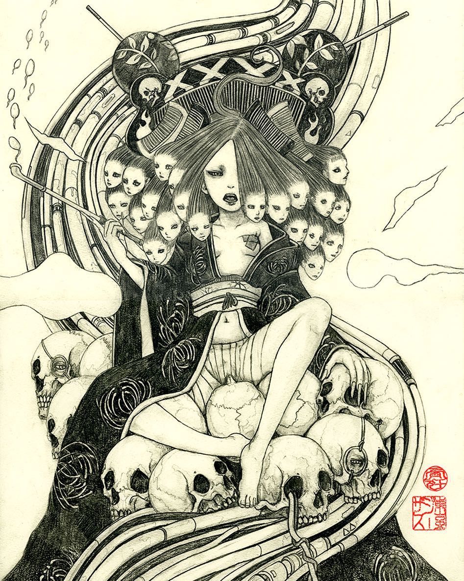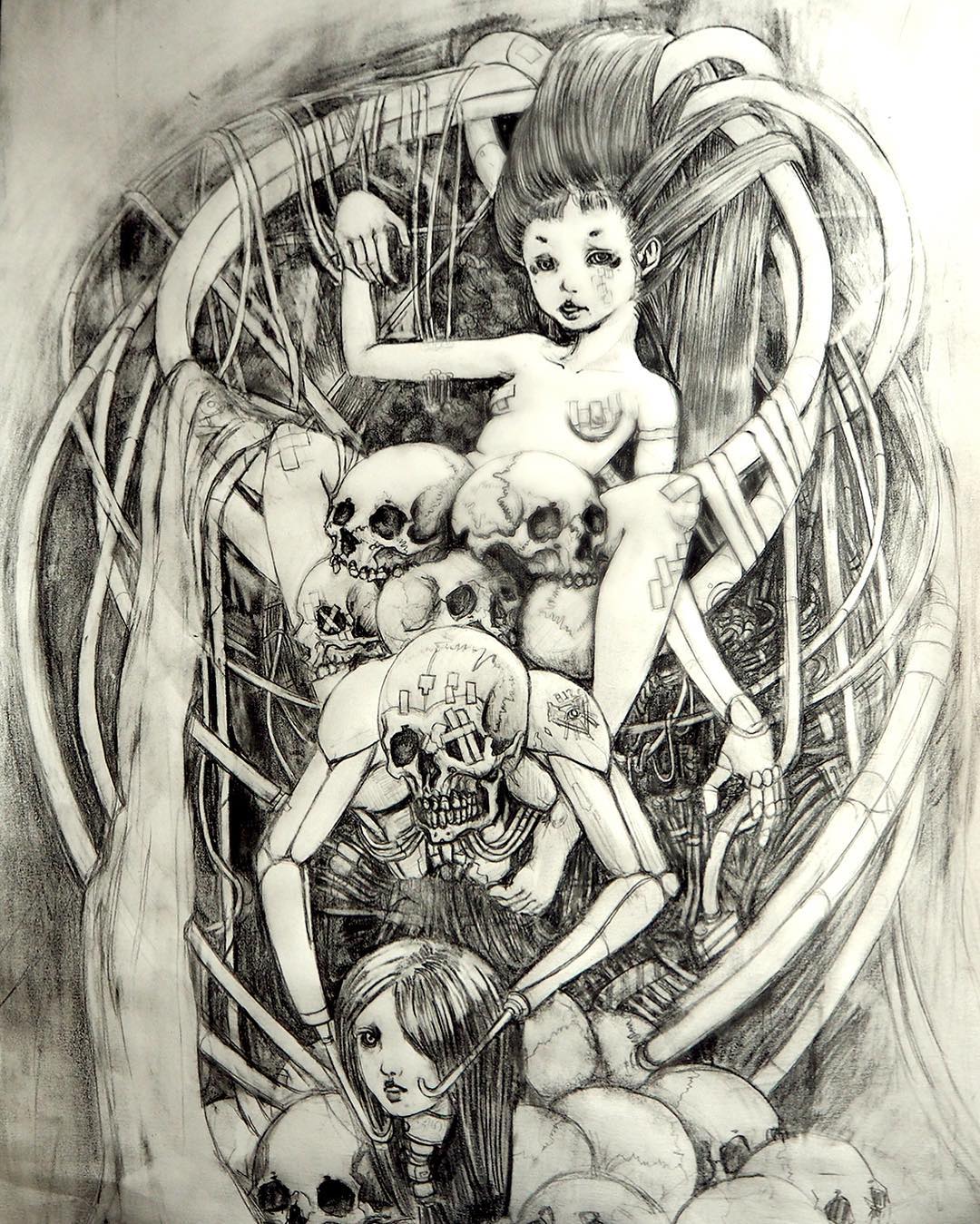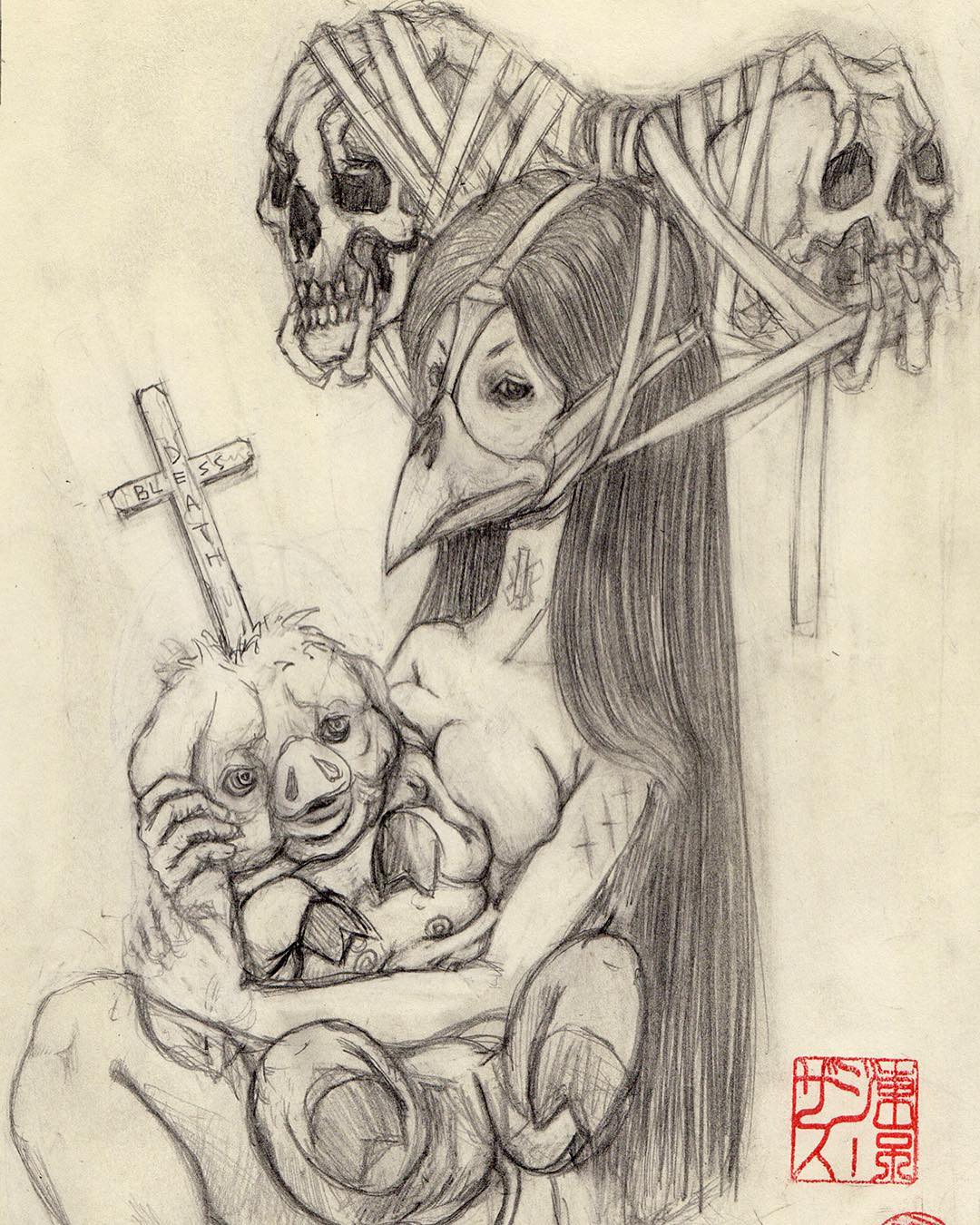 Sayu (a.k.a. Tokyo Jesus) is a sculptor, painter and toy designer. His drawings, paintings, toys, and pieces of jewelry are created in a signature post-apocalyptic gothic style. Toyko Jesus and Kidrobot have worked together on the sold-out Arcane Divination Tarot card-themed multi-artist Dunny Series (2017) where he lent his signature art design style for the Black Death Dunny Art Figure, White Death Dunny Art Figure, Empress Dunny Art Figure, and Judgement Art Figure. If he had a choice to do a collaboration with someone it would be Takeya Takayuki, Scott Wilkowski, Sket One, Yasushi Nirasawa, Simon Lee, Katsuya Terada, Ashley Wood, Eimi Takano, Pushead, Mark Ryden, Yoshitomo Nara, Chet Zar, and Tsutomu Nihei.